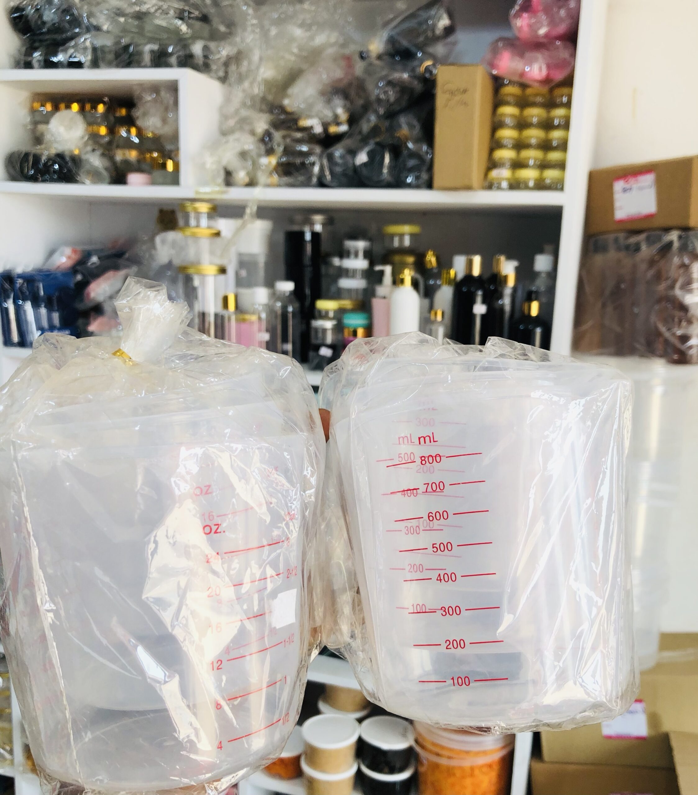 A durable, precise set of measuring cups designed for accurate measurement of liquids, powders, and cosmetic ingredients. Ideal for skincare, haircare, and DIY formulations, ensuring consistency and ease in every recipe